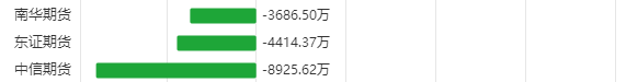 一周内中信期货、东证期货、南华期货在沪银上亏损居前,三机构分别亏损8925.62万元,4414.37万元,3686.50万元。